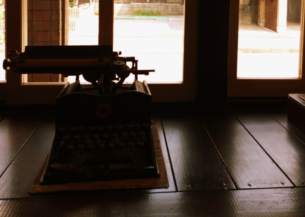 窓際にもタイプライターなどの小物が並んでいます。