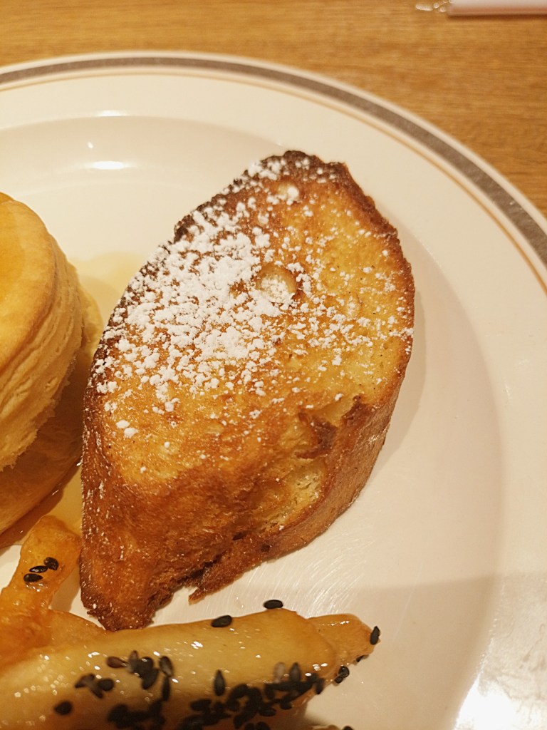 フレンチトーストは、しみしみタイプではなく、適度に染み込ませた仕様。外側にはサクッとした食感も残っており、個人的にはかなり刺さった一品でした。