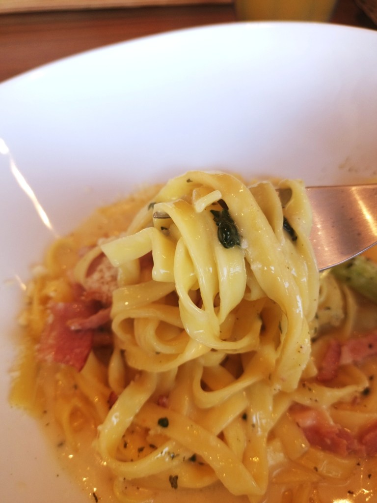 メインのパスタは10年以上お付き合いのある業者さんから納品された特別な麺を使用しており、定期的にフェットチーネ、タリオリーニ、リングイネ、ペンネ、ほうれん草麺、イカ墨麺など、さまざまな麺を入れ替えて提供しています。本日戴いたパスタも、しっかりとしたコシがあり、ソースとの絡みが抜群です。癖になる食感で、一度食べたらまた食べたくなる逸品です。こだわりのキッシュは、外はサクッと、中はふんわり。濃厚なチーズの旨味が広がるのに、後味は驚くほどさっぱりとしていて、食べやすさと深い味わいが絶妙に調和した一品です。