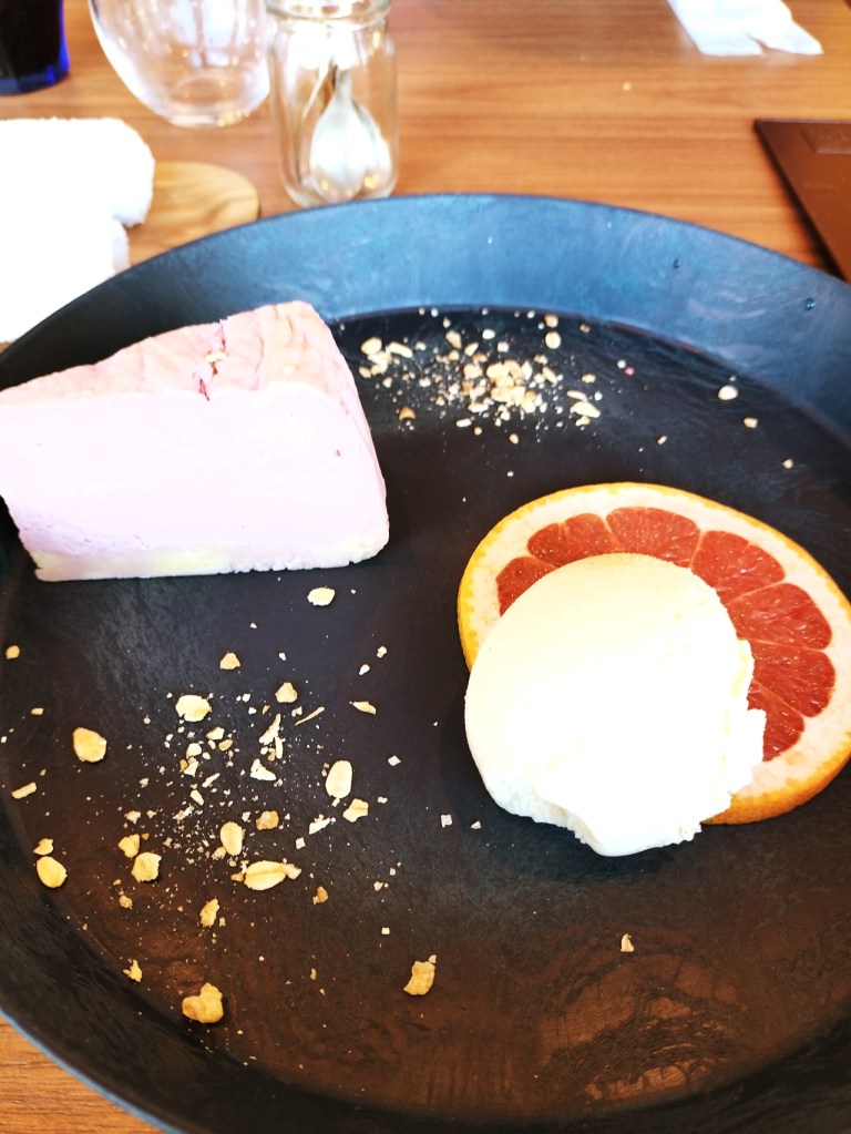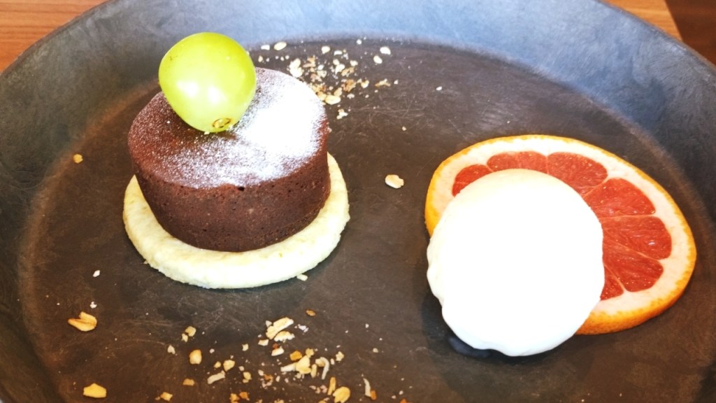 デザートに選んだのは、自家製の紫芋のケーキ。自然な甘さと紫芋特有の深い味わいが調和し、心が豊かになるようなデザートでした。スイーツにはオーガニックチョコや有機フルーツ、てんさい糖なども使われており、健康的でありながら満足感のあるデザートが楽しめます。