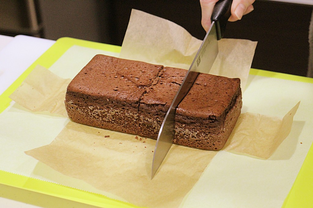 今回は包丁を使いましたが、刃の面積が大きいと生地が張り付いてしまい、きれいに切りにくくなります。