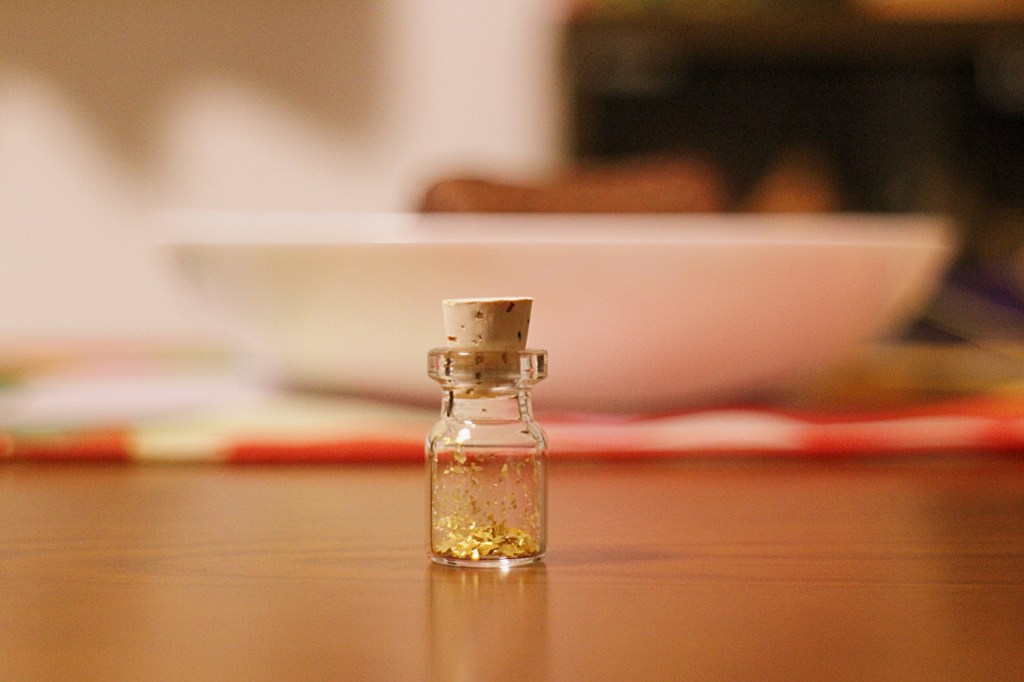 今回は少し遊び心を加えて、軽くデコレーションしてみました。ホイップクリームにベリーを添え、バレンタイン用に見つけた金箔をほんの少し。