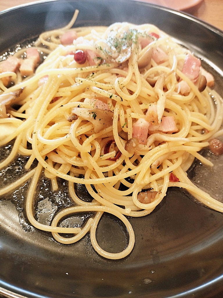 原点にして王道「ベーコン&きのこペペロンチーノ」