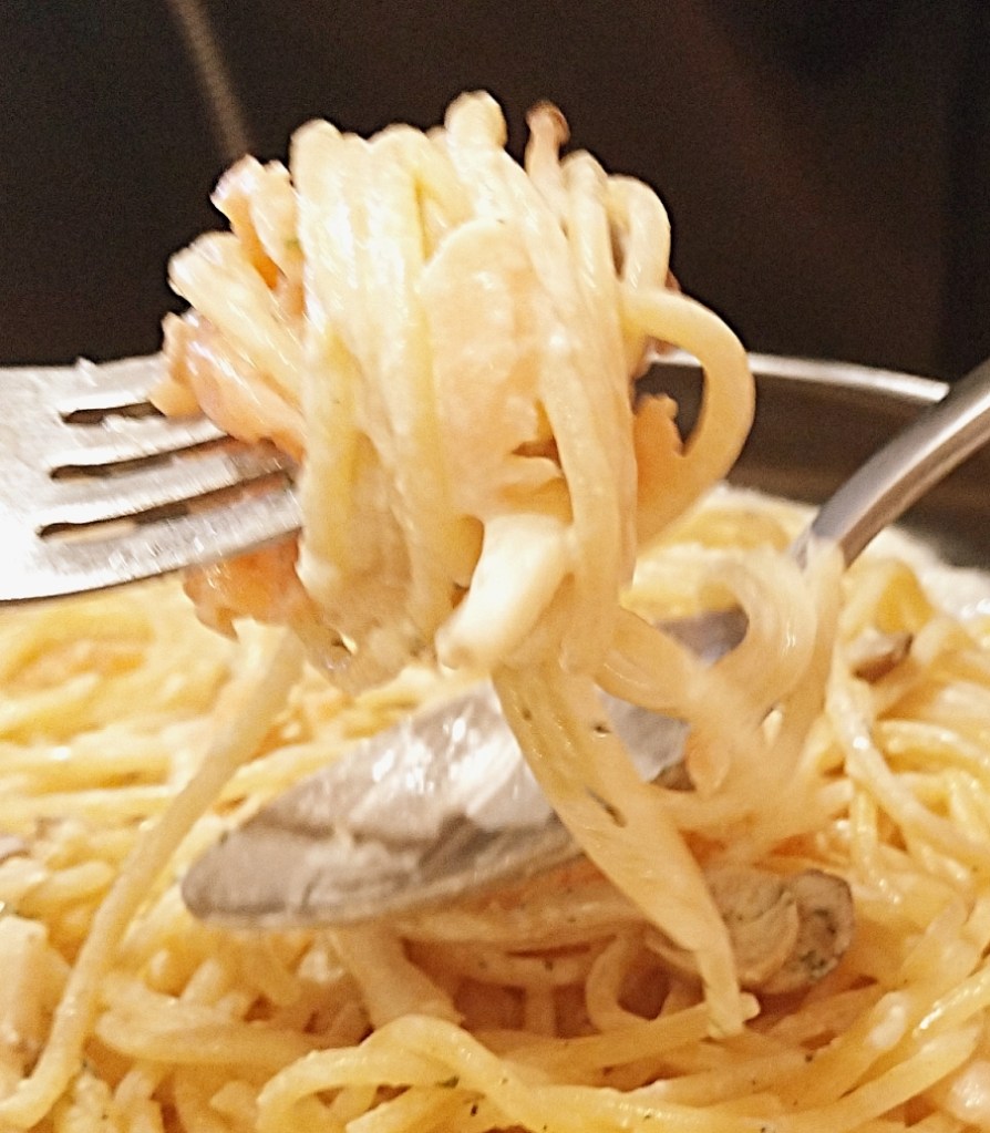 サーモンは存在感があり、臭みもなくとても上質。きのこはソースをしっかりと抱え込み、全体の旨みを底上げしています。粉チーズとパセリがアクセントになり、最後まで重たさを感じさせない仕上がり。濃厚なのにくどくない、完成度の高いクリームパスタでした。