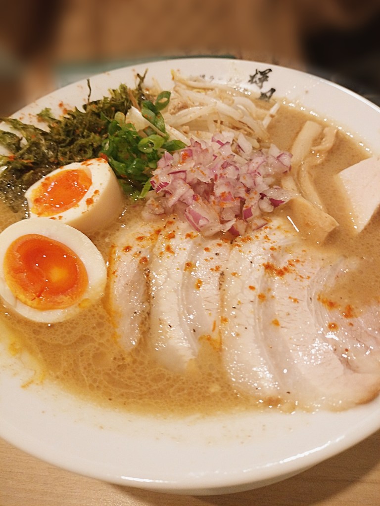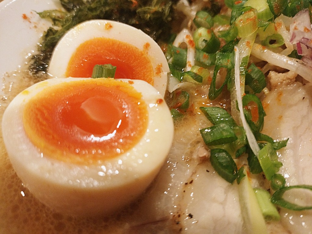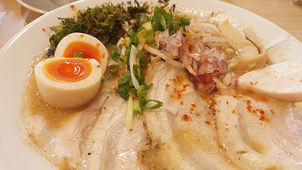 注文ごとにラードで炒められるもやしと挽肉。シャキシャキとした食感と香ばしさが加わることで、スープの奥行きはさらに深まる。今回は味玉を追加し、海苔とチャーシューを選択。背脂は見送ったが、それでも十分すぎる満足感だった。煮卵のとろりとした黄身、丁寧に仕上げられたチャーシュー、整然と盛り付けられた一杯の美しさ──見た目の完成度も相変わらず高い。
