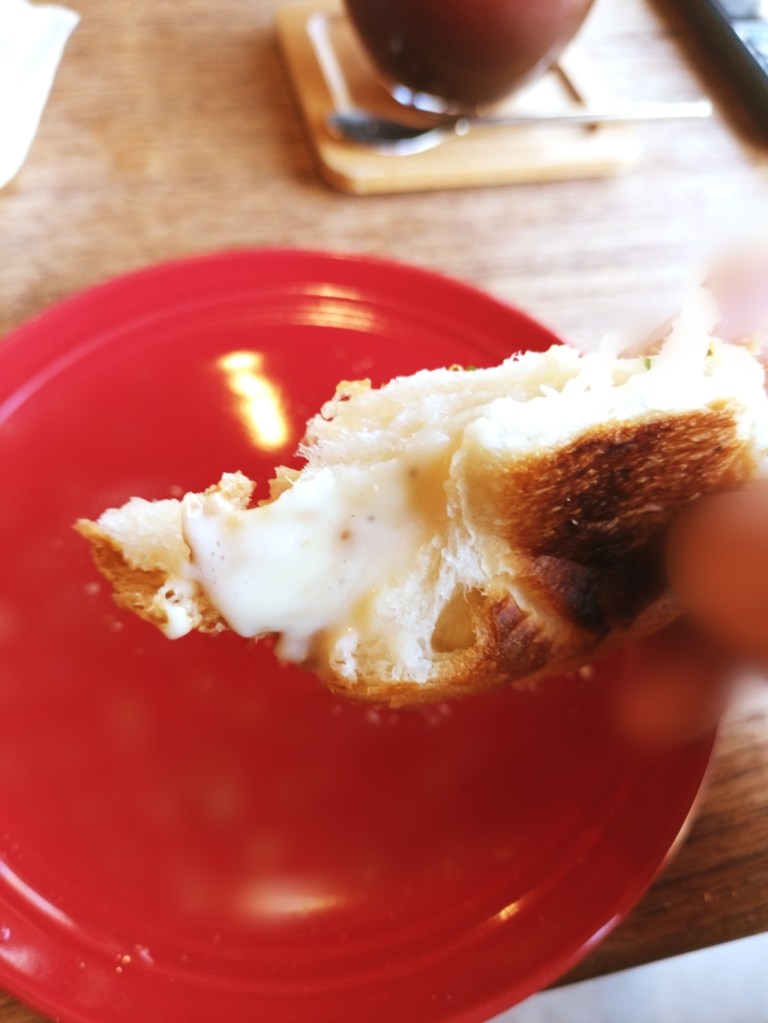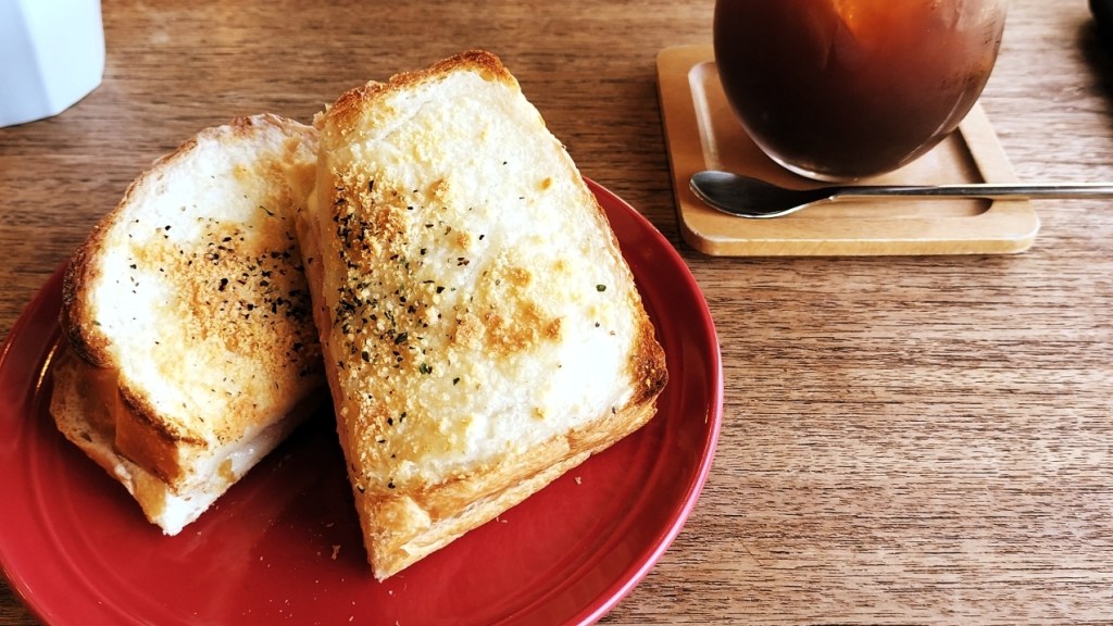 今回は、朝の時間帯に人気の「朝ごパン」をいただいてきました。選んだのは「ハムチーズサンド」。見た目にも食欲をそそる一品で、焼き上げた表面にはパルメザンチーズ、ブラックペッパー、パセリが散りばめられています。中と外に塗られたホワイトソースがパンをしっとり仕上げ、中にはブラックペッパーとガーリックのスパイスが効いていて、ももハムとスライスチーズの旨味が絶妙にマッチ。まさに、「朝マック」のhitonoto版と呼ぶにふさわしい一品です。