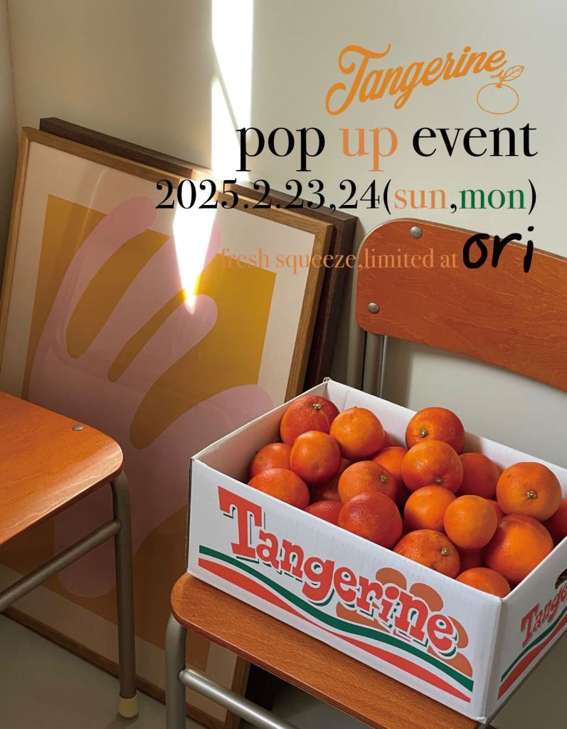 場所:ori cafe ※店内利用の場合はoriのメニューからのオーダーが必要です。一部イベントスペース内ではみかんジュースのみの利用も可能ですが、小さいスペースのためご注意ください。