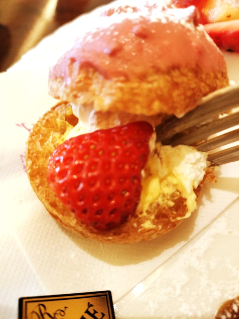 - 苺チョコがかかった「苺のシュークリーム」
