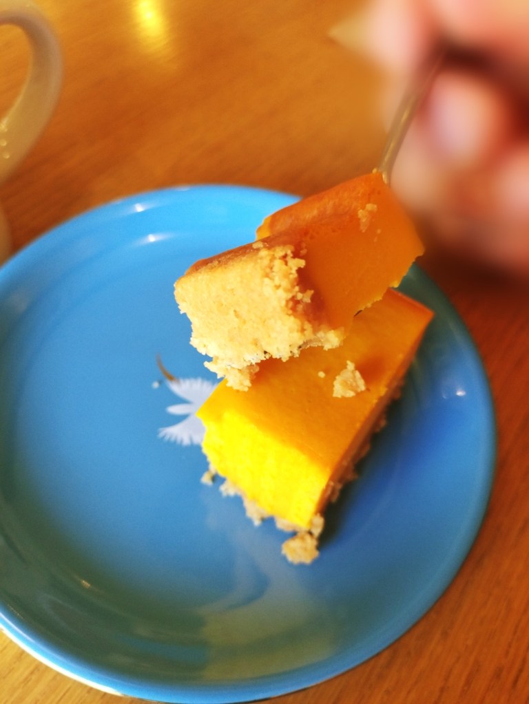 最後に登場したのは、かぼちゃのケーキとホットコーヒー。さっぱりしつつ濃厚な味わいのケーキは、コース全体を締めくくるにふさわしい一品でした。コーヒーとの相性も抜群で、甘さ控えめのデザートは食後の満足感をさらに高めてくれました。