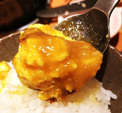 もう一品は「和出汁カレー煮込みハンバーグ」。和出汁をベースにしたカレーとの相性が絶妙で、深い旨味がハンバーグ全体にしっかりと染み渡っています。今回はオプション(税込400円)で「スフレオムレツ」をトッピング。ふわふわとろとろの食感が特徴のオムレツが、スパイシーなカレーをやさしく包み込み、味のバランスをさらに引き立ててくれます。まるで一皿の中に物語があるような完成度で、最後の一口まで飽きることなく楽しめました。