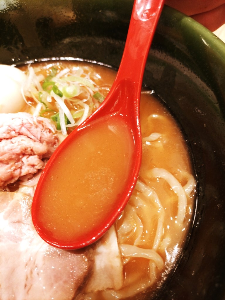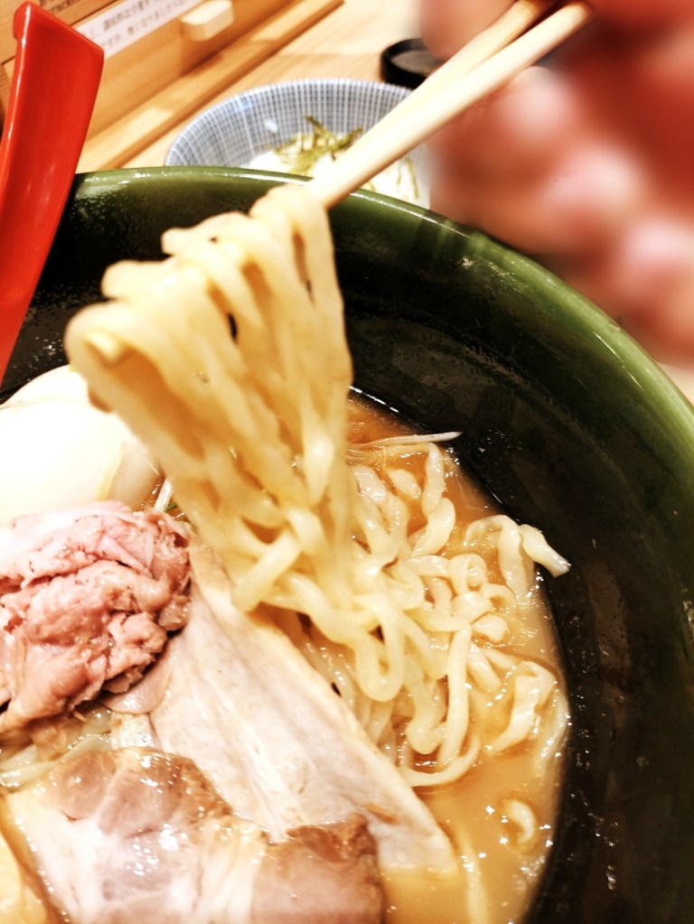 スープは、焼きあごの旨みが凝縮。塩味のパンチがありながらも、しっかりとしたコクが感じられる絶妙なバランスです。飲んだ瞬間、香ばしい焼きあごの風味が口いっぱいに広がり、まるで高級和食を食べているかのような感覚に。