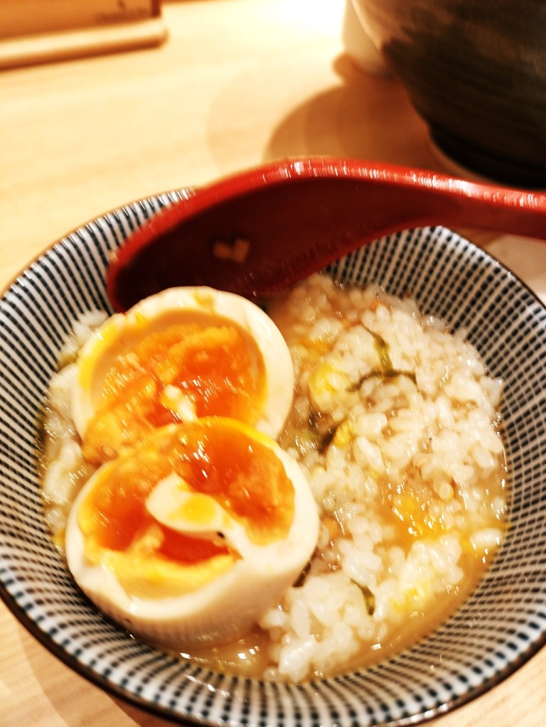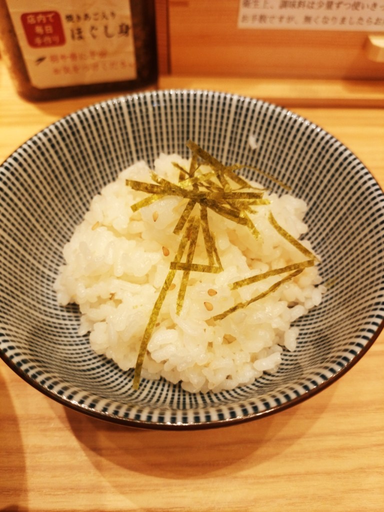 そして、このラーメンの最大の楽しみ方は、〆にご飯を投入して「あごだし茶漬け」にすること。あごだしスープをご飯にかけると、まるで料亭の雑炊のような贅沢な味わいに。スープの旨みが染み込んだご飯は、まさに至福のひととき。