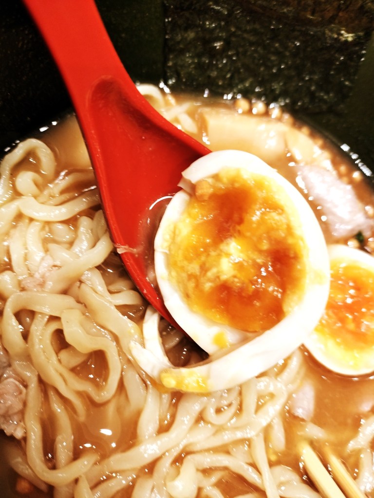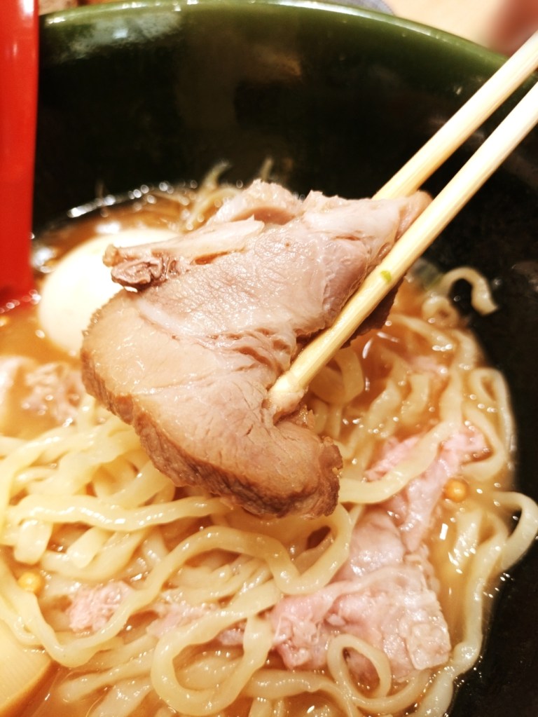 トッピングの豚バラは、スープによく馴染んでとろけるような口当たり。チャーシューと麺を一緒に食べると、その旨さに思わず箸が止まらなくなります。さらに、味玉の濃厚な黄身、メンマの食感、海苔の風味が絶妙に調和し、全体の美味しさを底上げ。