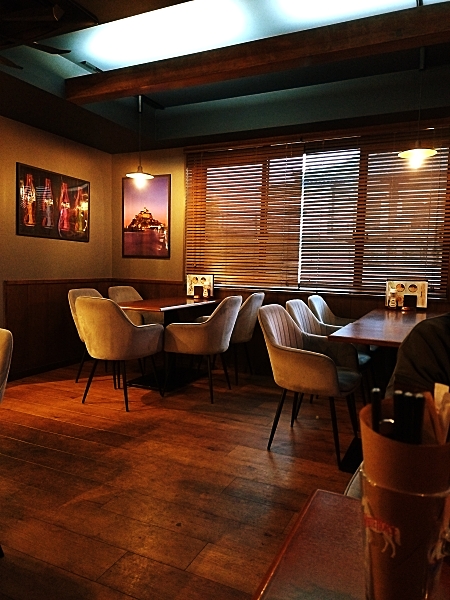 お店に一歩足を踏み入れると、そこはアメリカンダイナーを彷彿とさせるお洒落な空間。照明はやや暗めで、ムーディーな雰囲気が漂い、大人の隠れ家的な落ち着きがあります。
