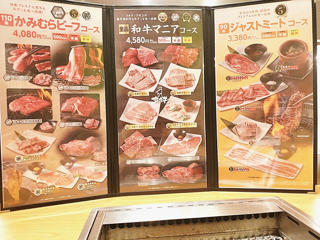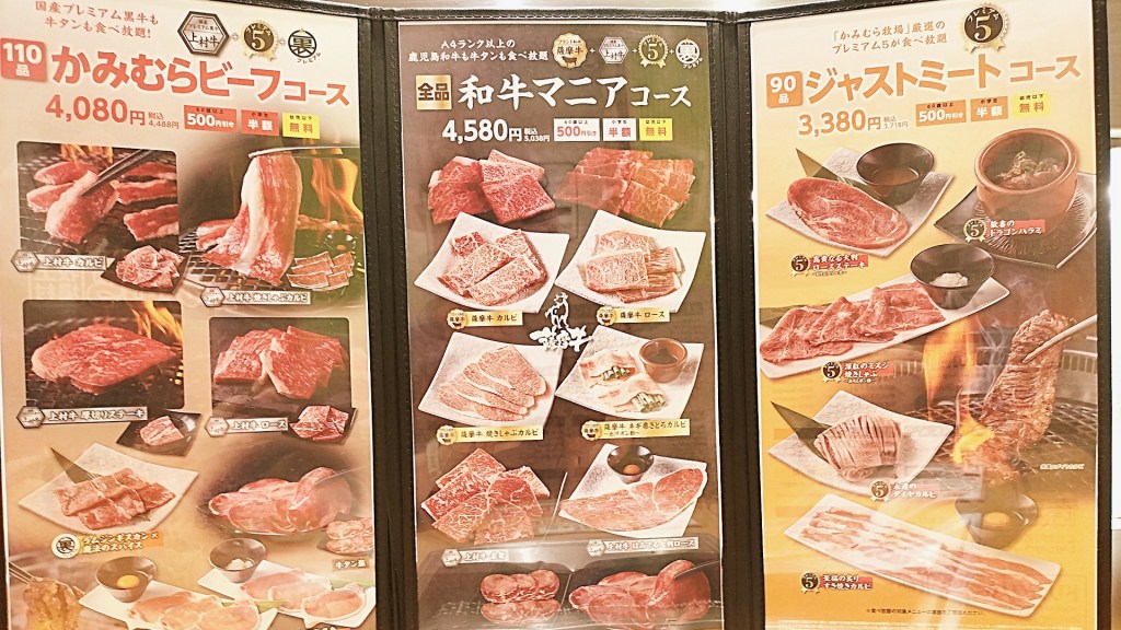 今回選んだのは「かみむらビーフコース」(税込4,488円)。こちらは、ワンランク上の上質なお肉が味わえるコースで、黒毛和牛を中心に、希少部位や食感が楽しいお肉も揃います。最初に注文したのは、「深紅のミスジ焼きしゃぶ」と「歓喜のドラゴンはらみ」。
