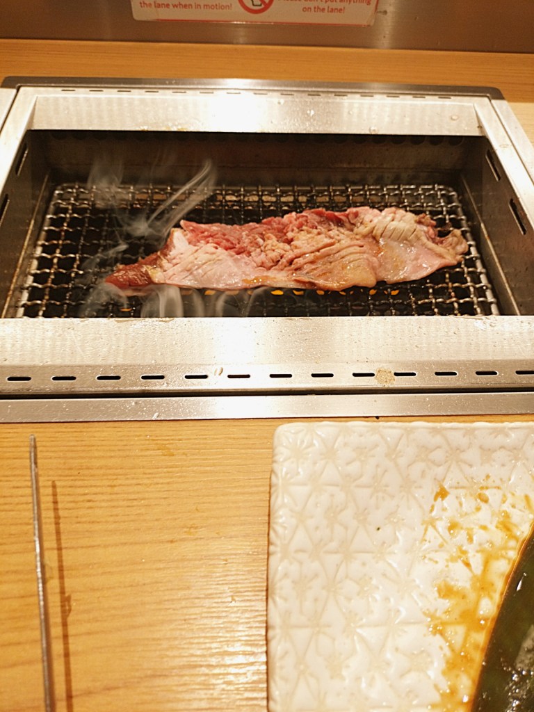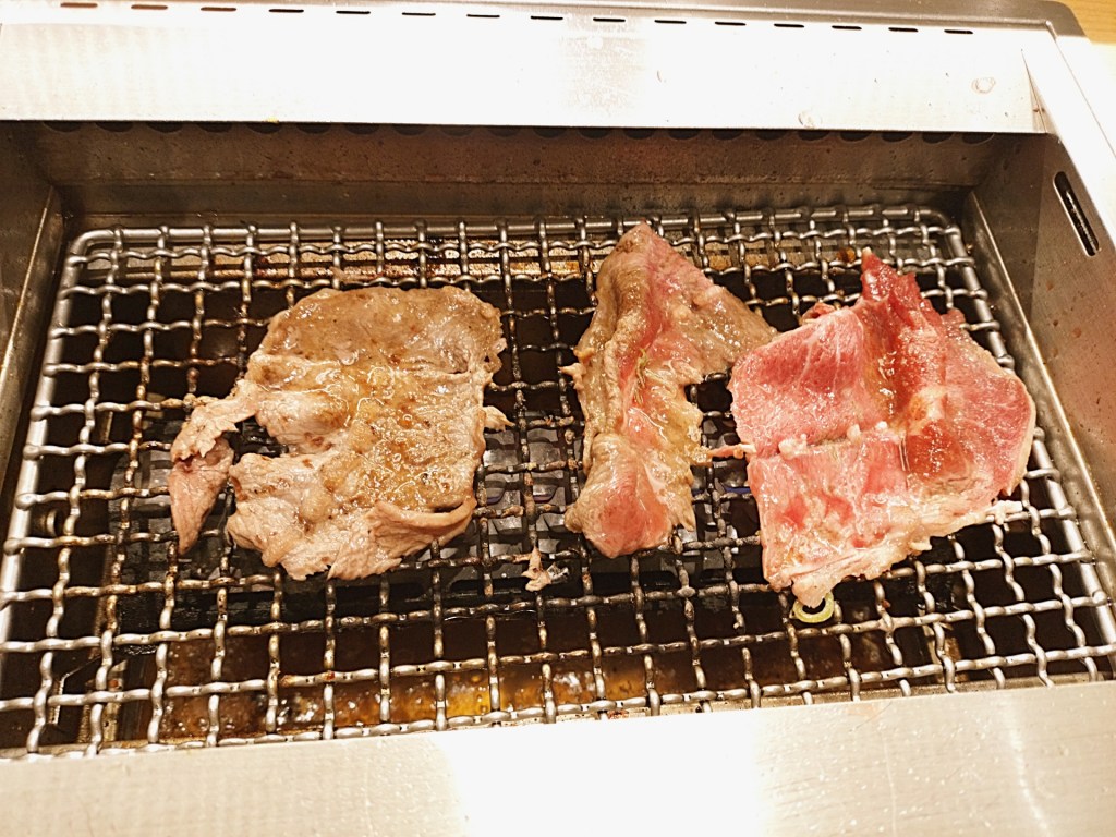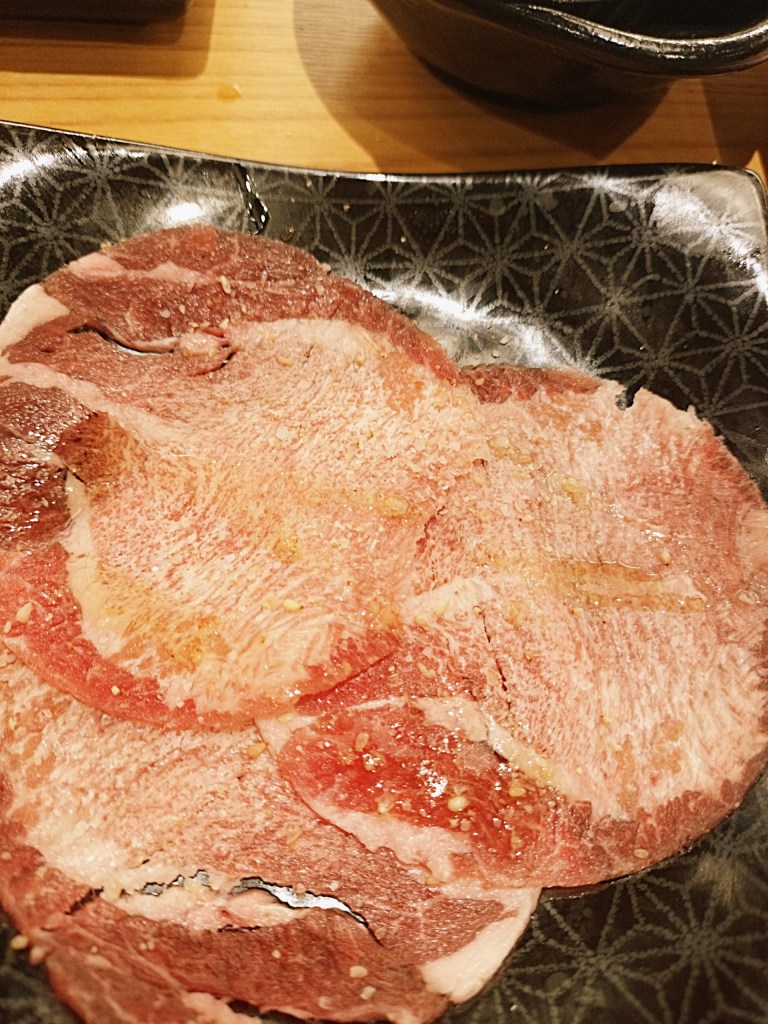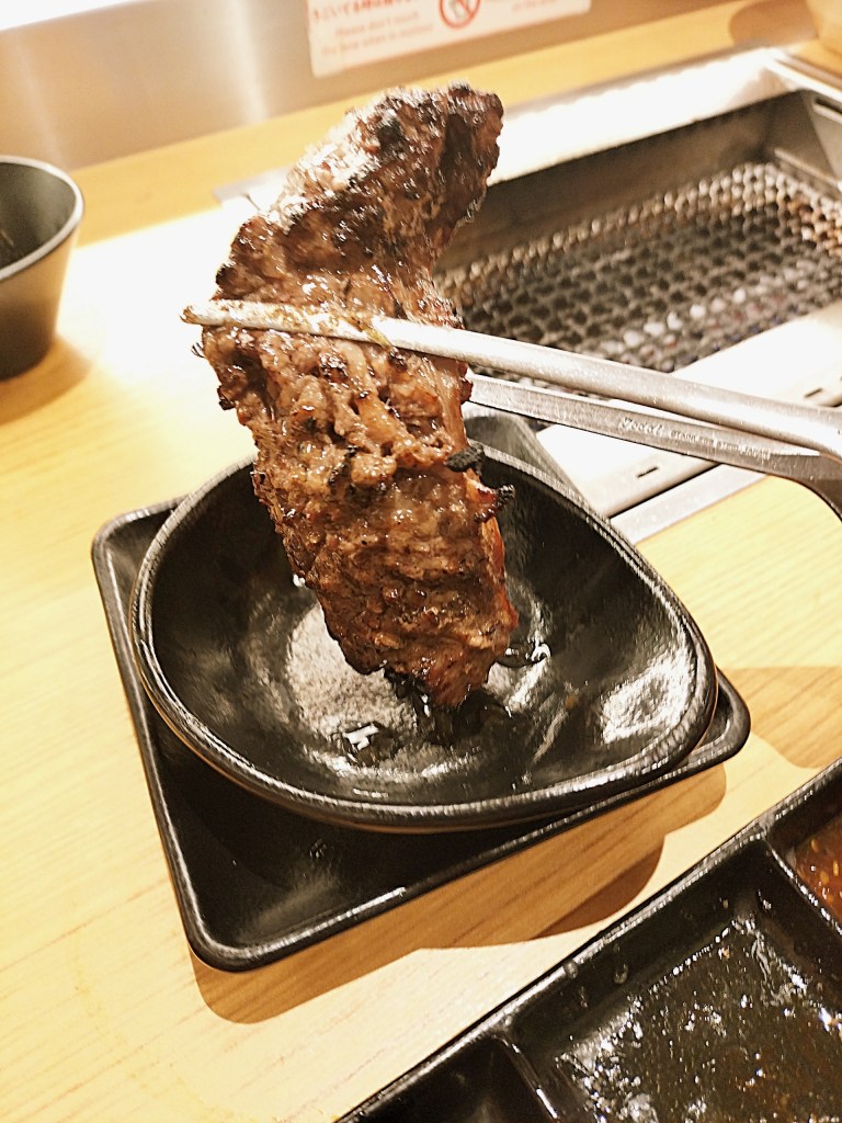 ミスジはその名の通り、美しい深紅色が目を惹きます。薄くスライスされたミスジを軽く炙ると、脂がじんわり溶け出し、肉の繊維に沿って舌の上でとろけていきます。一口目から「うわ、これは美味しい…!」と思わず声が出るほど。しっかりとした旨味とともに、赤身ならではの肉々しさも感じられ、各種タレとの相性も抜群です。