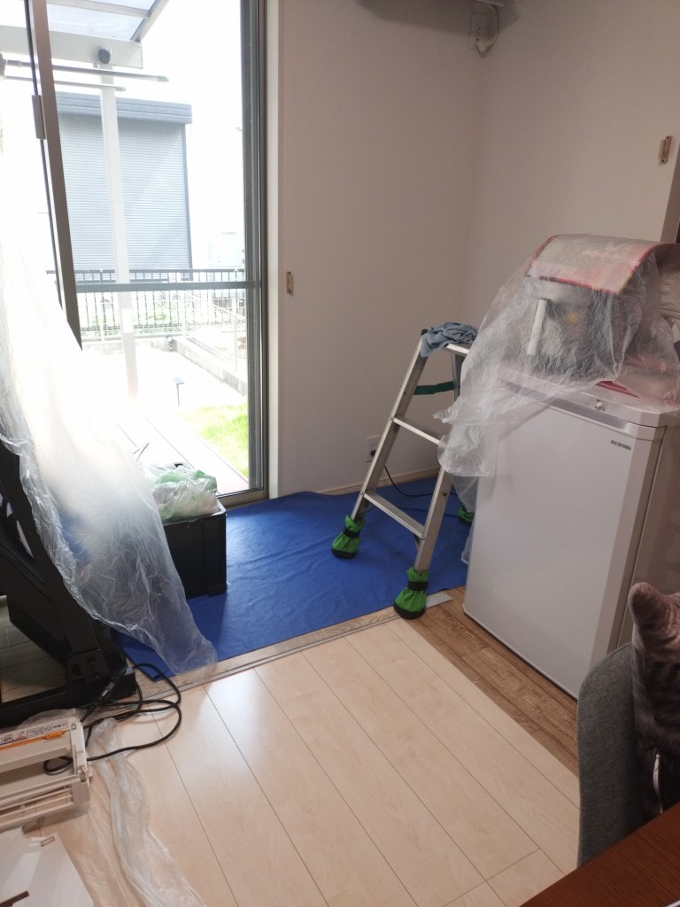 機材やお風呂の水を使って作業するとのことでしたが、お風呂場にも丁寧な養生がされていて安心。こうした気遣いが細かいところにも現れていて、好印象でした。