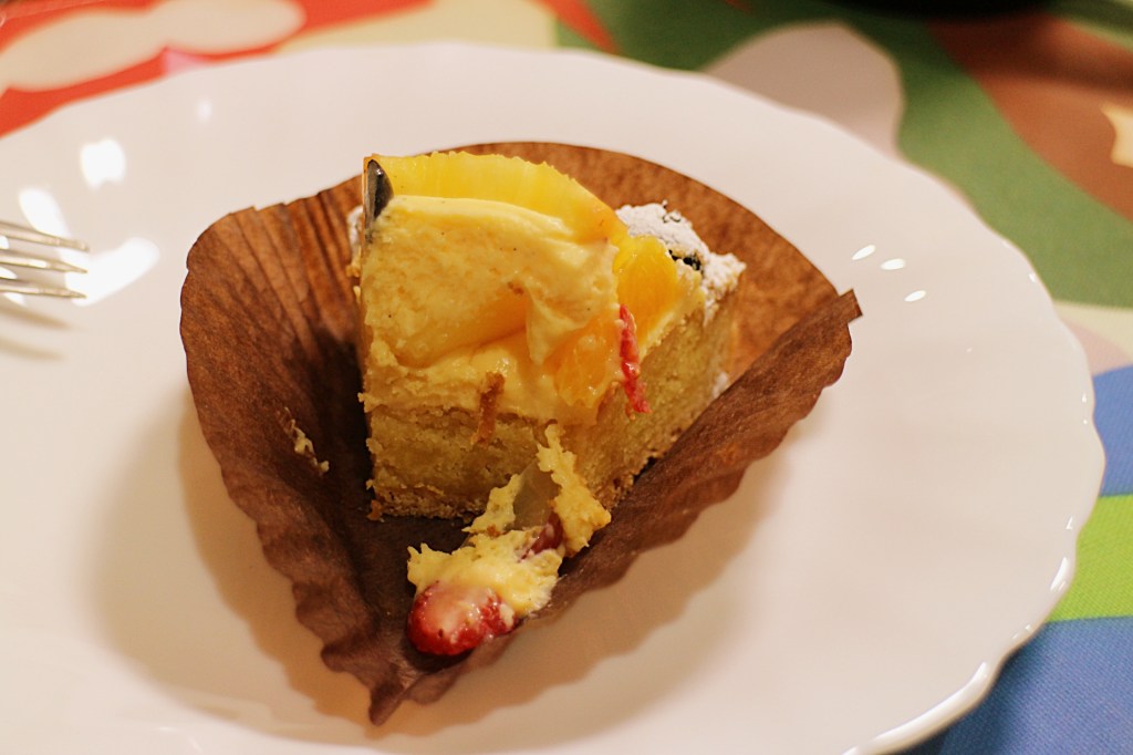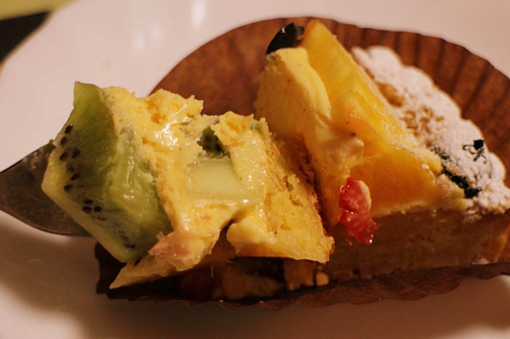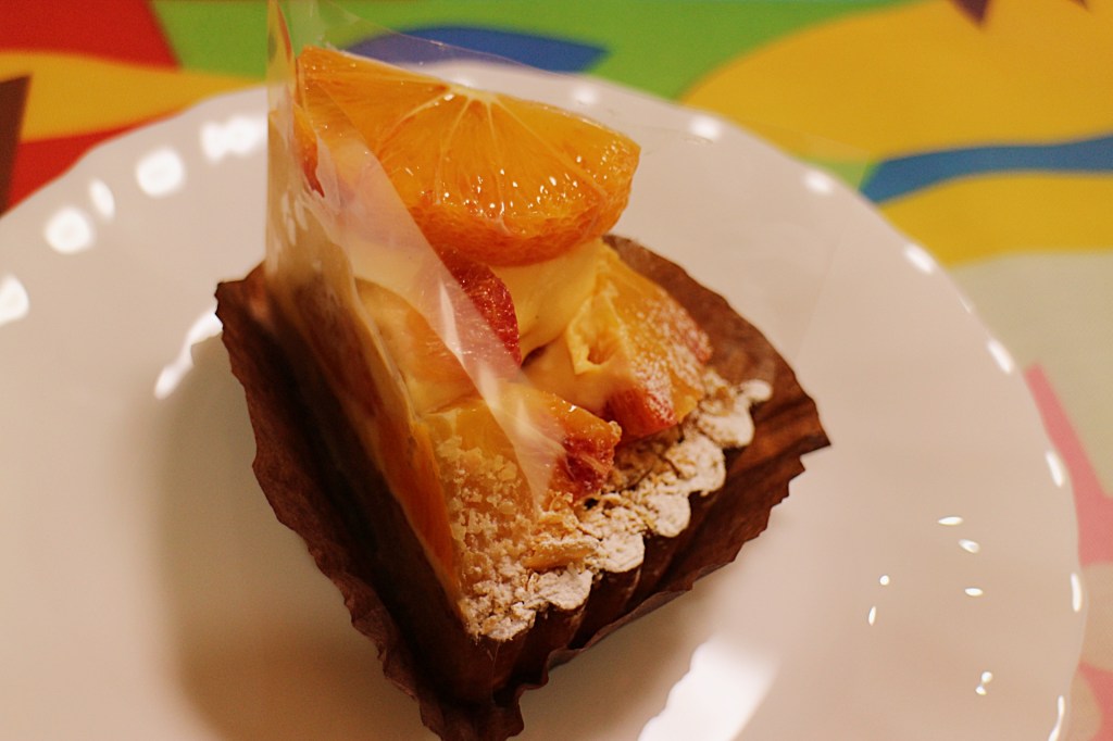 見た目のインパクトそのままに、果実の味も非常に力強い。口に入れると、ブラッドオレンジの濃厚な甘みとほのかな苦味が広がり、「これはもう果物そのものを楽しむタルトだ」と実感します。甘すぎず、芳醇な風味が最後まで続くため、単調にならず最後まで飽きずに楽しめました。