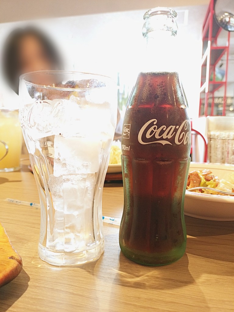まずは喉を潤そうと頼んだのが、懐かしい瓶のコカ・コーラ。スタッフが運んできたその瞬間、瓶の冷たさが手に伝わってきます。グラスに注いで一口飲めば、しゅわっとした刺激とコーラ独特の甘みが口いっぱいに広がり、食欲のスイッチが一気にオンに。