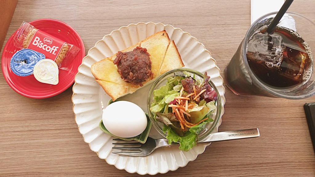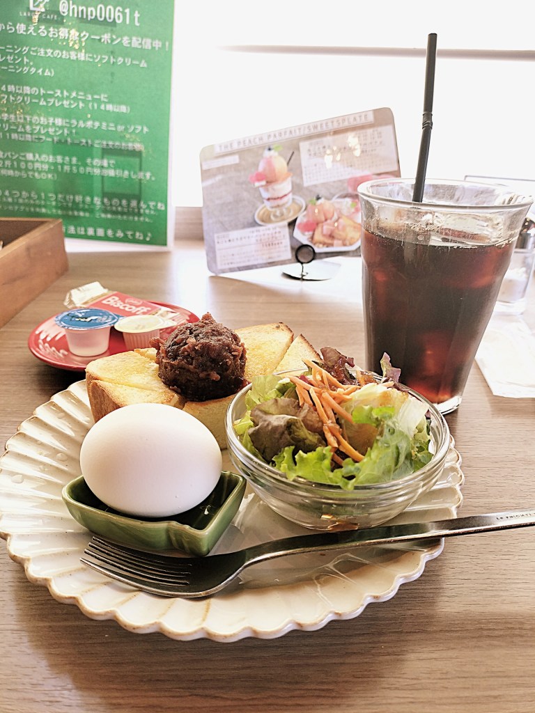 トーストと小倉、そしてサラダが絶妙なバランスを作り出し、朝食らしい優しい満足感をもたらしてくれます。最後にいただくゆで卵は、ぷりぷりとした食感で、締めくくりとしても申し分ありません。ボリュームも十分で、朝から心地よい満腹感と満足感を味わうことができました。