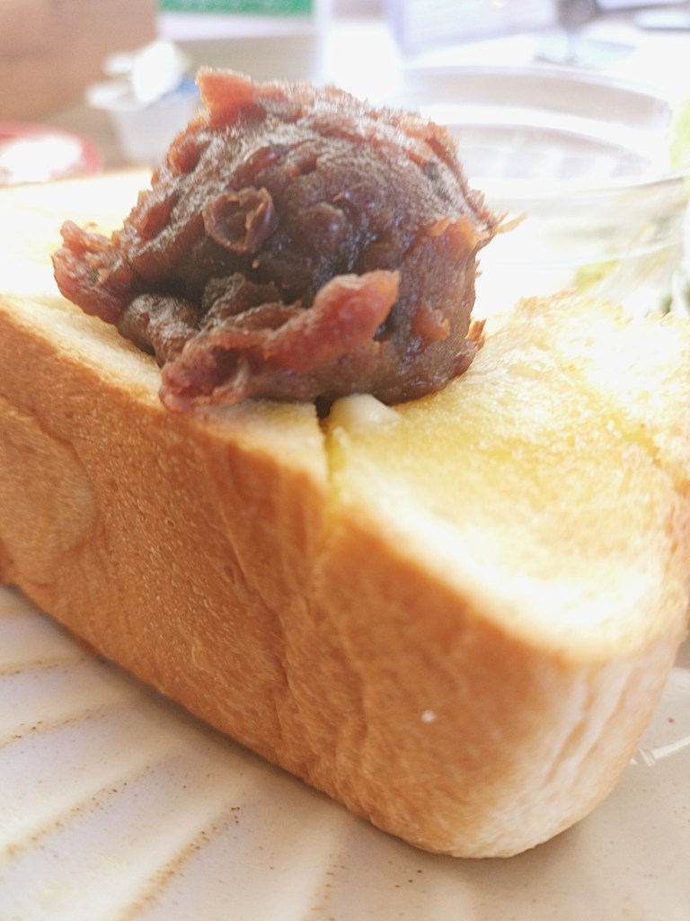 運ばれてきた厚切りトーストは、お店自慢の食パンを使用。外側はカリッと香ばしく、中はふんわりとした食感が楽しめます。そこに添えられた小倉は甘みがしっかりとしており、コーヒーの苦味との相性は抜群です。