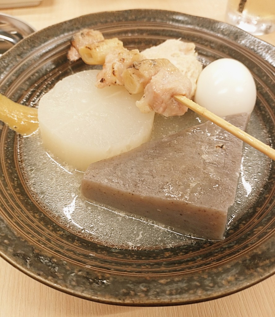 たまご、こんにゃく、つくね、鶏なんこつ串、大根と、王道ながら存在感のあるラインナップ。
