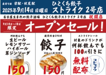 名古屋・栄エリアに、ついに話題の大衆酒場ブランド ひとくち餃子 ストライク の2号店が誕生しました!