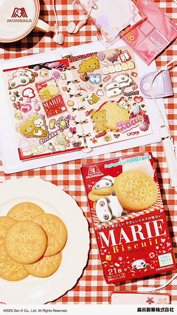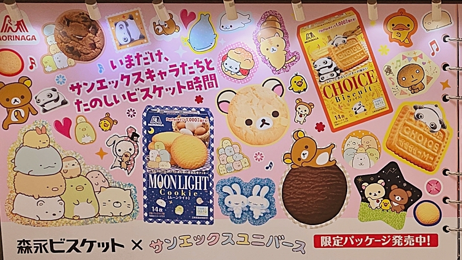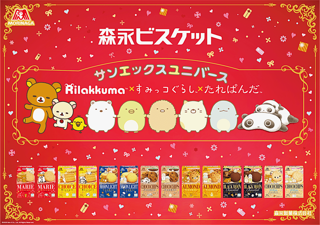 この企画は、森永ビスケットとサンエックスユニバース(=リラックマ、すみっコぐらし、たれぱんだなどのキャラクター群)とのコラボレーション。森永側では、マリー、チョイス、ムーンライト、ブラックムーンといったロングセラービスケットに、キャラクターデザインを施した限定パッケージを順次展開しています。