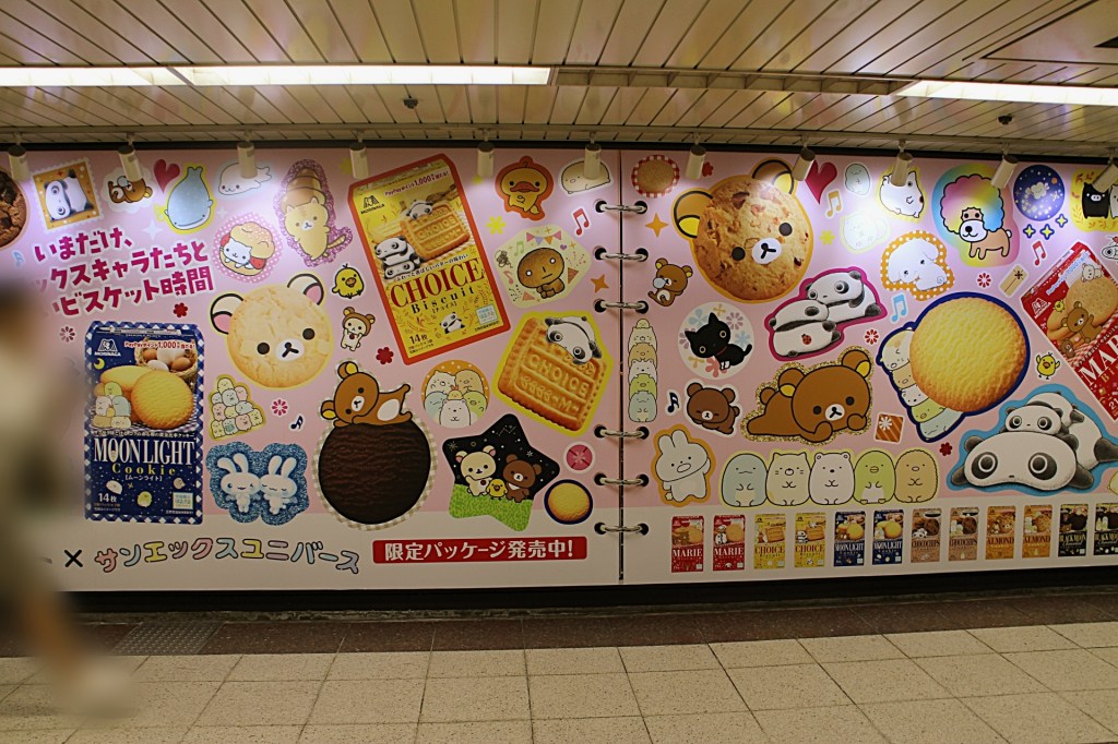 しかし、今回この広告を見て、「久しぶりにあの味を買って帰ってみようかな」という気持ちが湧いてきました。駅構内のコンビニでコラボパッケージを探すと、意外とすぐに見つかり、リラックマやすみっコぐらしのキャラクターがあしらわれたマリーやムーンライトの箱が並んでいました。パッケージの可愛さと“持って帰りたくなる”雰囲気が、購買意欲を後押ししてくれます。