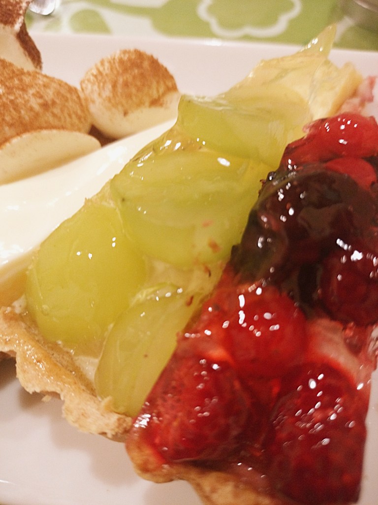 そして、食後のお楽しみといえばスイーツ。季節ごとに変わるタルトやケーキは、専門店顔負けの本格派です。今の季節は、毎年大人気の「シャインマスカットのタルト」が登場中。瑞々しいマスカットの甘みと香りが、しっとりとしたクリームとサクサクのタルト生地に絡み合い、思わず笑顔がこぼれます。