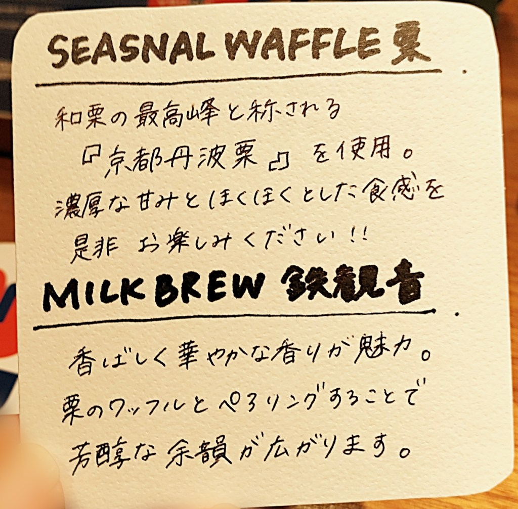 今回の「和栗ストロープワッフル × 鉄観音ミルクブリュー」は、単にスイーツとドリンクをセットで楽しむという枠を超えた、まさに“ペアリング”の提案でした。甘みと渋み、香ばしさとまろやかさ──異なる要素を組み合わせることで、それぞれの味や香りが引き立て合い、まるで化学反応のように新たな美味しさが生まれます。