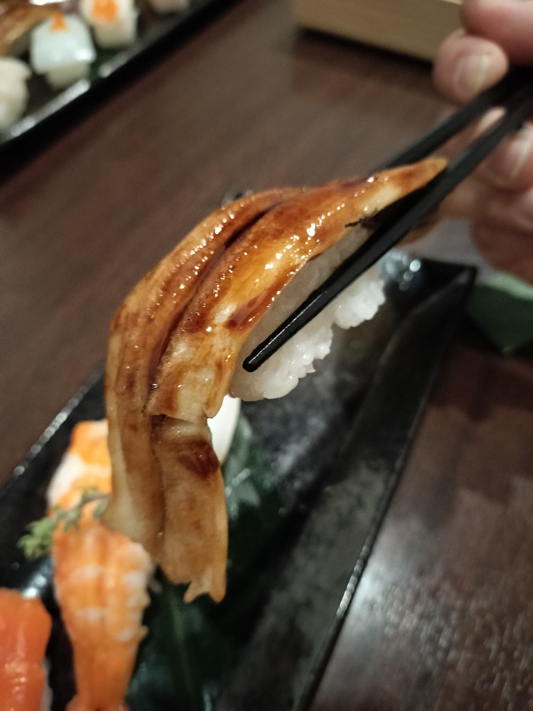 そして、続いて現れたのは握り寿司6貫。中でも堂々と存在感を放つのは、厚みのある穴子。ひと口頬張ると、ふわりとほどけ、甘さと香ばしさが広がる。その後に続くマグロ、サーモン、帆立、イカ、エビはどれも鮮度抜群。寿司店顔負けのクオリティで、「しゃぶしゃぶ店でここまで!?」と驚かされる。