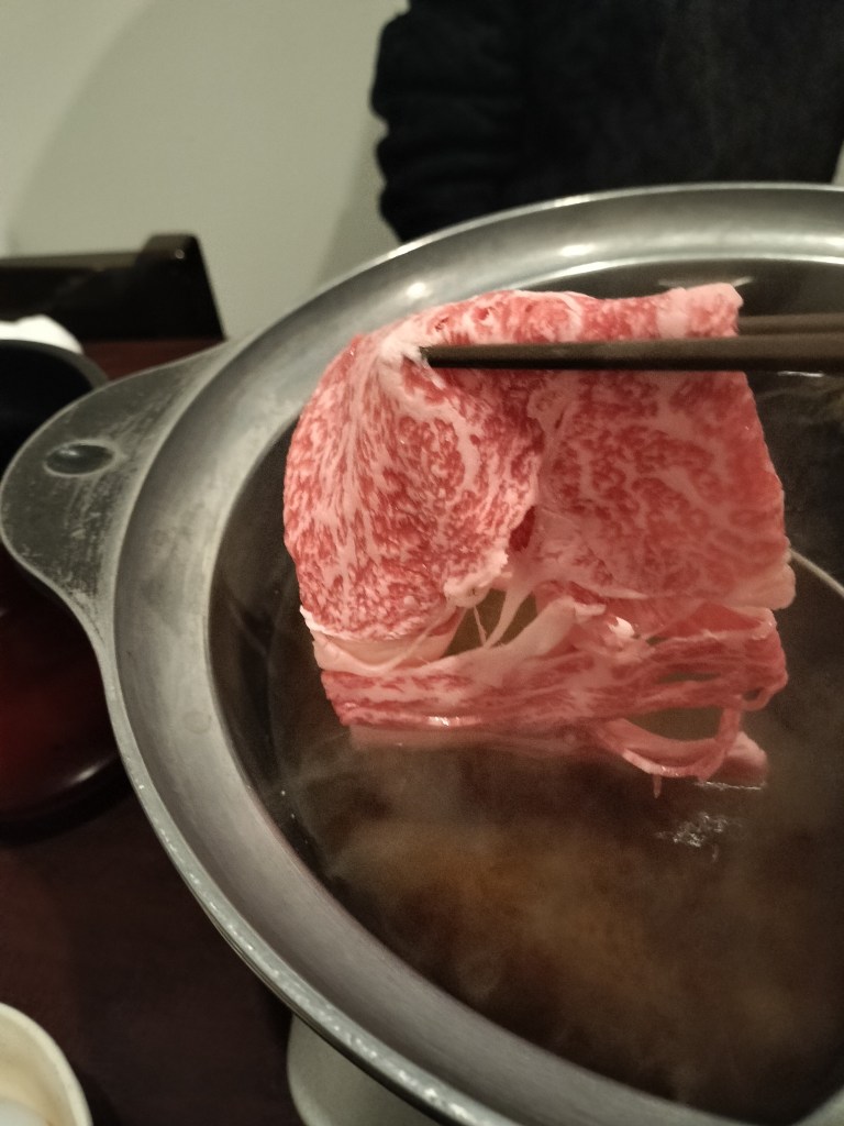 黒毛和牛を極み出汁にくぐらせ、最初のひと口を運ぶ。