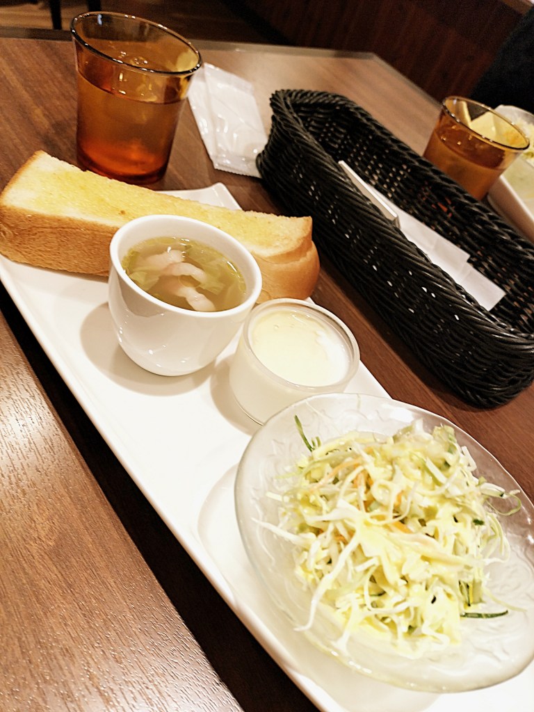 さらにサラダは、特製のコーンドレッシングがとにかく絶妙。コーンの甘みと爽やかな酸味がバランスよく、思わず「このドレッシング、買って帰りたい…」と思ってしまうほど。実際に店頭で販売されているそうで、人気の理由が一口でわかりました。