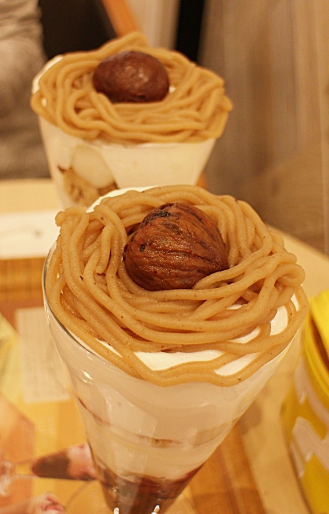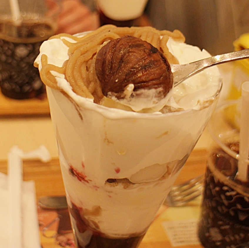 白玉のもちっとした食感、玄米フレークの軽やかな歯ごたえも良いリズムを生み、口の中に変化をもたらしてくれます。そして最後に待っているのが、丸ごとトッピングされた渋皮栗。ここまで食べ進めたうえで味わう栗は、まさに締めにふさわしく、満足感をしっかりと残してくれます。