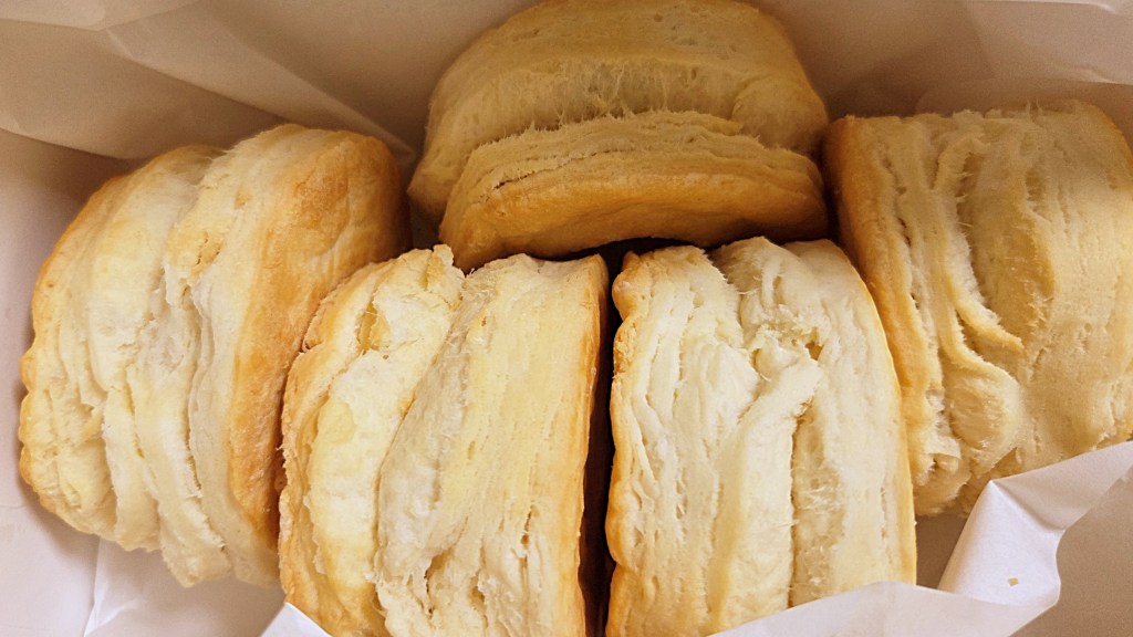 今回は、好物であるビスケット(税込290円)を5個詰めてテイクアウト。