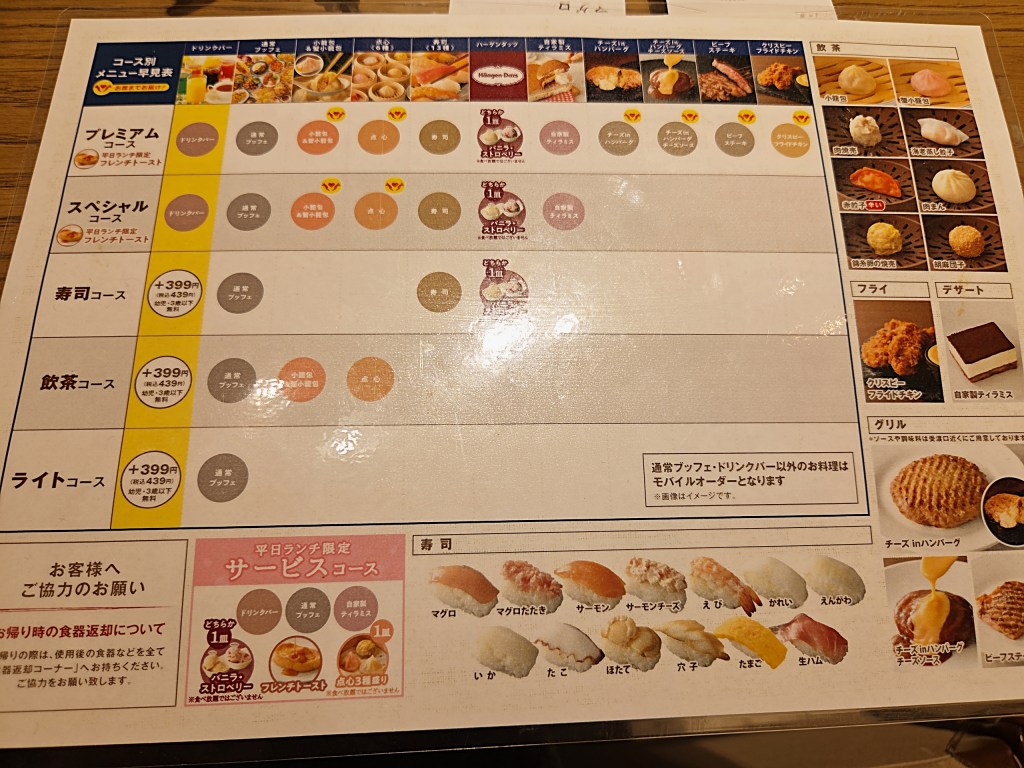 飲茶が無い点は人によってはデメリットですが、その分、寿司に特化した満足度の高さは魅力的。さらにハーゲンダッツや豊富なサイドメニューもあり、全体の満足度は非常に高いと感じました。