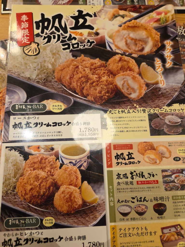 全体として、派手すぎるわけではないけれど、ちゃんと満足できる安心感のある御膳でした。ロースかつでしっかり食べたい気持ちも満たされつつ、帆立クリームコロッケでちょっとした贅沢感も楽しめる。こういう組み合わせ、個人的にはかなり好きです。