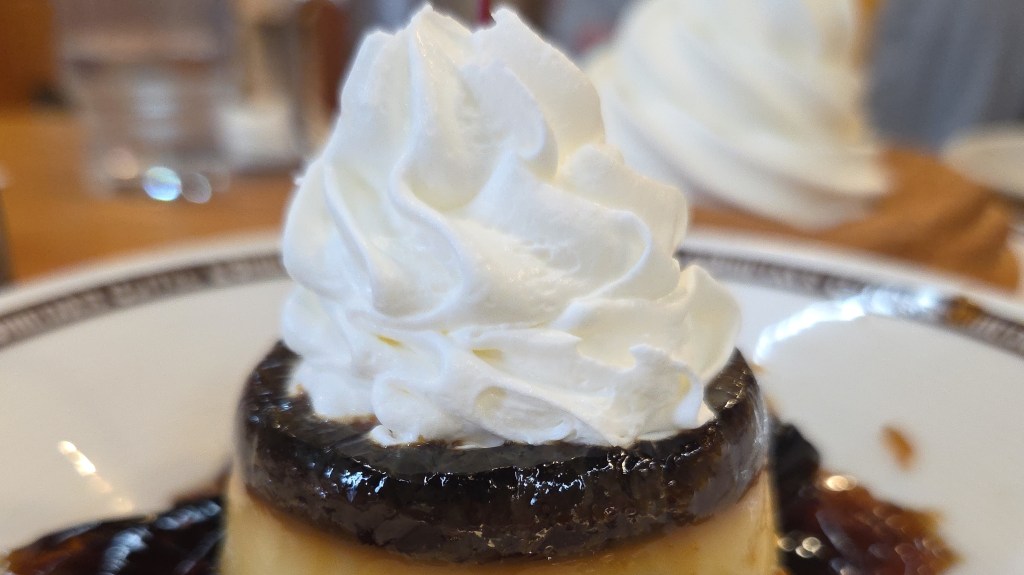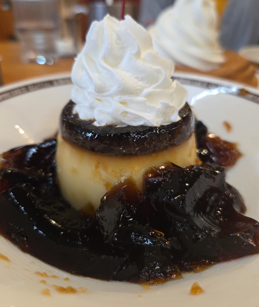 今回はさらに、選べるデザートセットを利用して「珈琲所のプリン(税込660円)」も注文。こちらも期待を裏切らない美味しさでした。ひと口食べて感じたのは、どこか懐かしさを感じる味わい。あのプッチンプリンが好きな方なら、間違いなく気に入るであろう仕上がりです。濃厚でコクがありながらも、後味は意外とすっきりしており、最後まで飽きずに楽しめます。