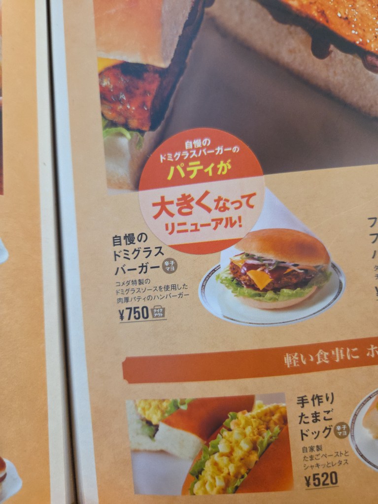 一口かじると、肉厚なパティから溢れる肉汁と、コメダ特製のドミグラスソースが絶妙に絡み合い、しっかりとした満足感を与えてくれます。そのボリューム感は、まるで本格的なハンバーグをそのまま挟み込んだかのよう。食べ応えも抜群で、「今日はしっかり食べたい」という気分にぴったりの一品でした。これまで“ハンバーガーを食べるなら別の店”という選択肢もありましたが、コメダもその候補にしっかり加わったと感じます。