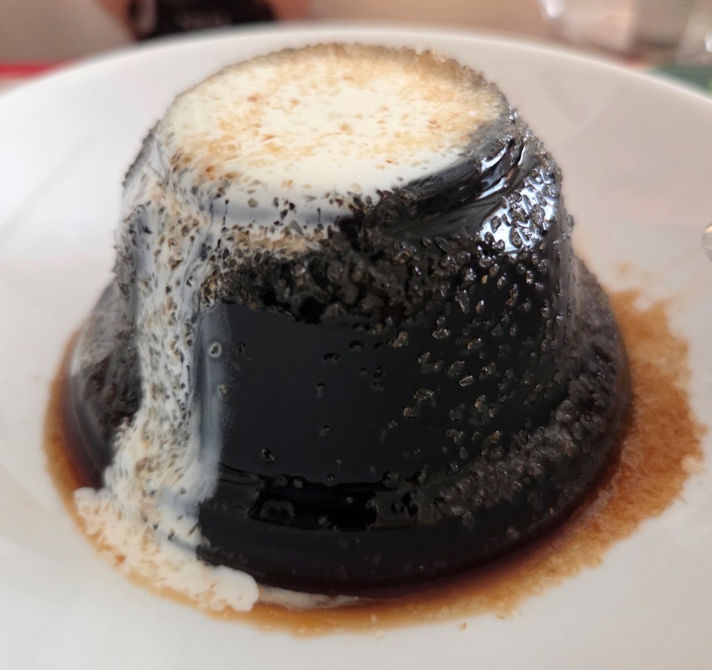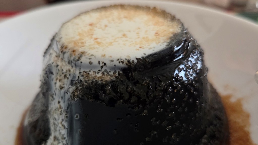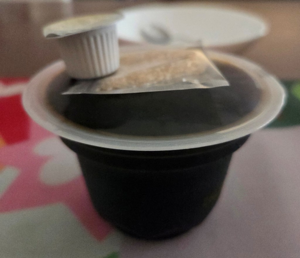 そして、この日一番のおすすめがモカキリマン珈琲ゼリー(税込388円)。ひと口食べた瞬間、その完成度の高さに驚かされました。コーヒーのほろ苦さや渋みが単なる苦味ではなく、しっかりとした“旨味”として感じられる奥深い味わい。付属のクリープやザラメにもこだわりが感じられ、甘さと苦味のバランスが絶妙です。思わずお皿に移して、ちょっとしたデザートタイムを楽しんでしまいました。